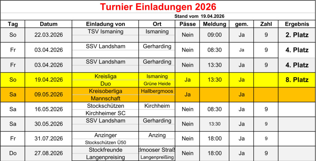 Trainingszeiten